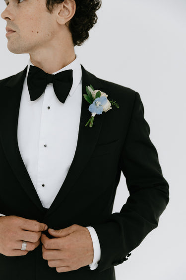 Featuring delicate tones of lilac, pink or peach and seasonal highlights like lisianthus and roses – this pretty pastel buttonhole is perfect for a Spring and Summer wedding.