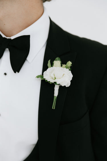 Simple, elegant and fresh – our white and green buttonhole adds a timeless finishing touch. Designed using seasonal white blooms and textural foliage like lisianthus or astrantia, it’s the perfect choice for classic, natural wedding style.