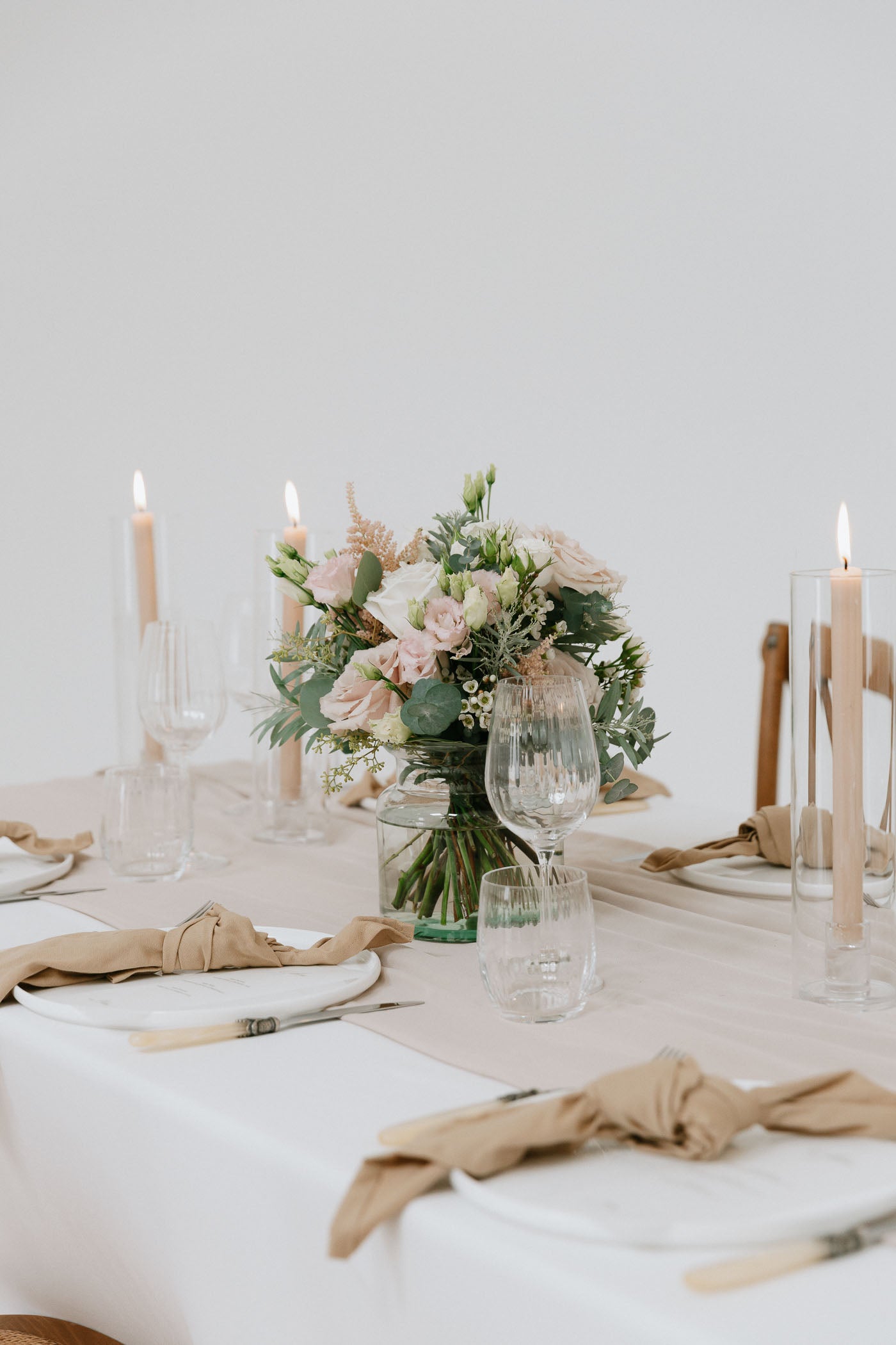 Elegant and romantic, our blush-hued table centre brings soft pink and nude tones to your wedding table.